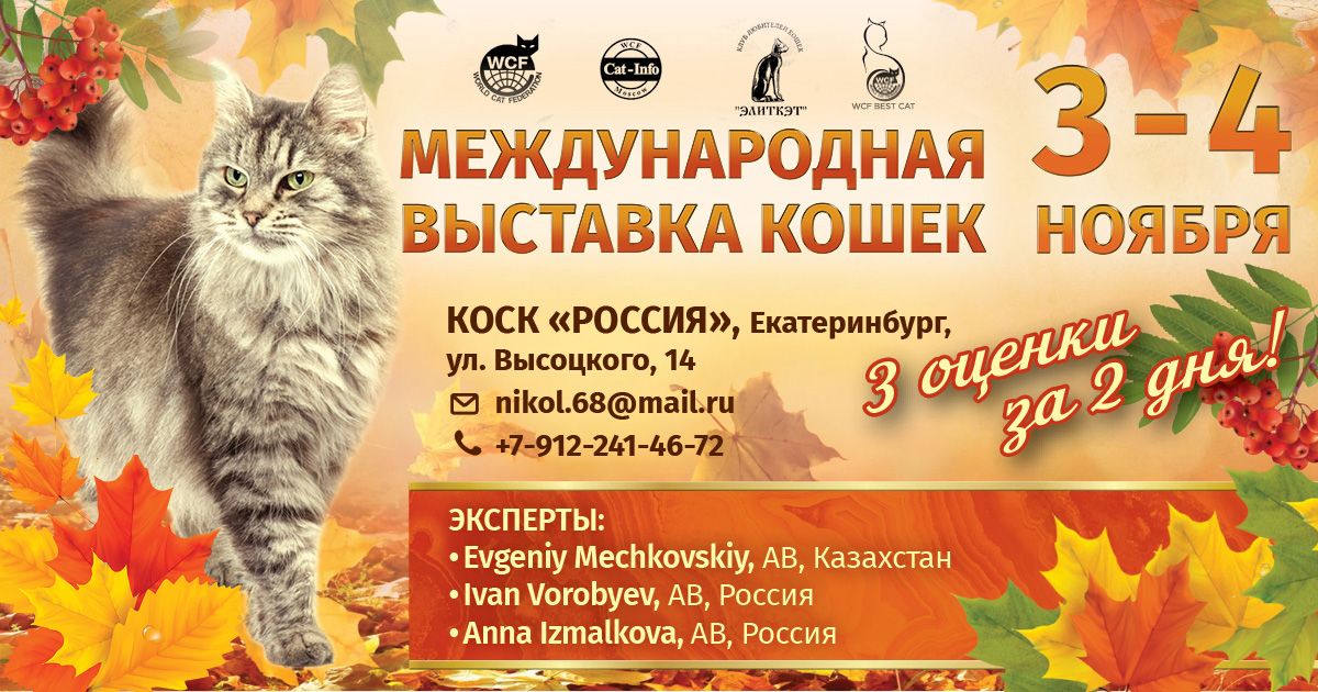 по вторникам , 18-00 до 20-00 http://www.elitcatclub.ru